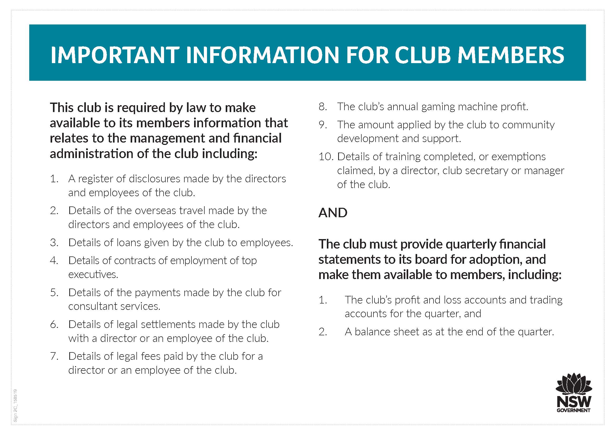 Important Information for Club Members